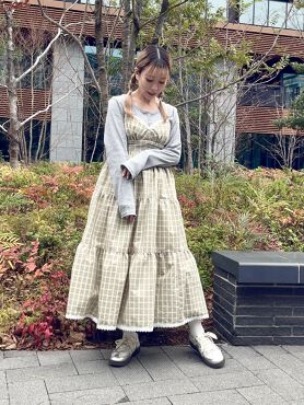 秋っぽく赤のギンガムチェックスカートと合わせたくて買いました。めっちゃ可愛い。