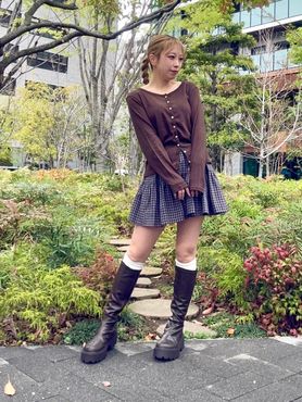秋っぽく赤のギンガムチェックスカートと合わせたくて買いました。めっちゃ可愛い。