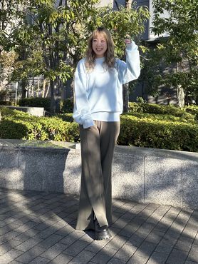 脚長効果抜群なフレアシルエットがポイントのパンツ