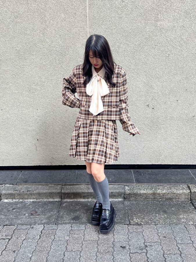 るなSHIBUYA109148cmInstagramID:luna_moonru2025.09.30秋はやっぱりブラウンカラーのジャケット!! しかもセットアップで着れちゃいます◎ ガーリー好きさんにはたまらないチェック柄なのも♪♪PUNYUSプニュズぷにゅず渡辺直美ガーリー新作アイテムスタイリング商品NEWチェックショートジャケット ¥8,800 (税込)サイズ:1NEWボックスプリーツチェックミニスカート ¥5,500 (税込)サイズ:1NEWリボン付きブラウス ¥5,940 (税込)サイズ:1