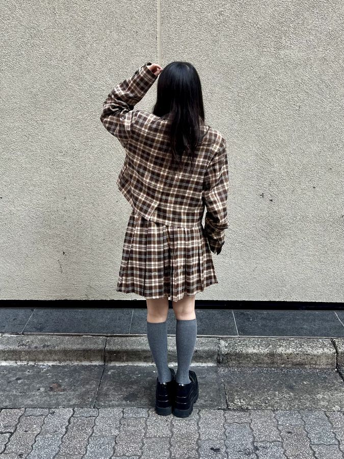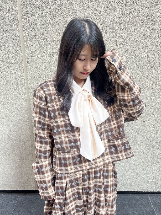 秋はやっぱりブラウンカラーのジャケット!! しかもセットアップで着れちゃいます◎ ガーリー好きさんにはたまらないチェック柄なのも♪♪