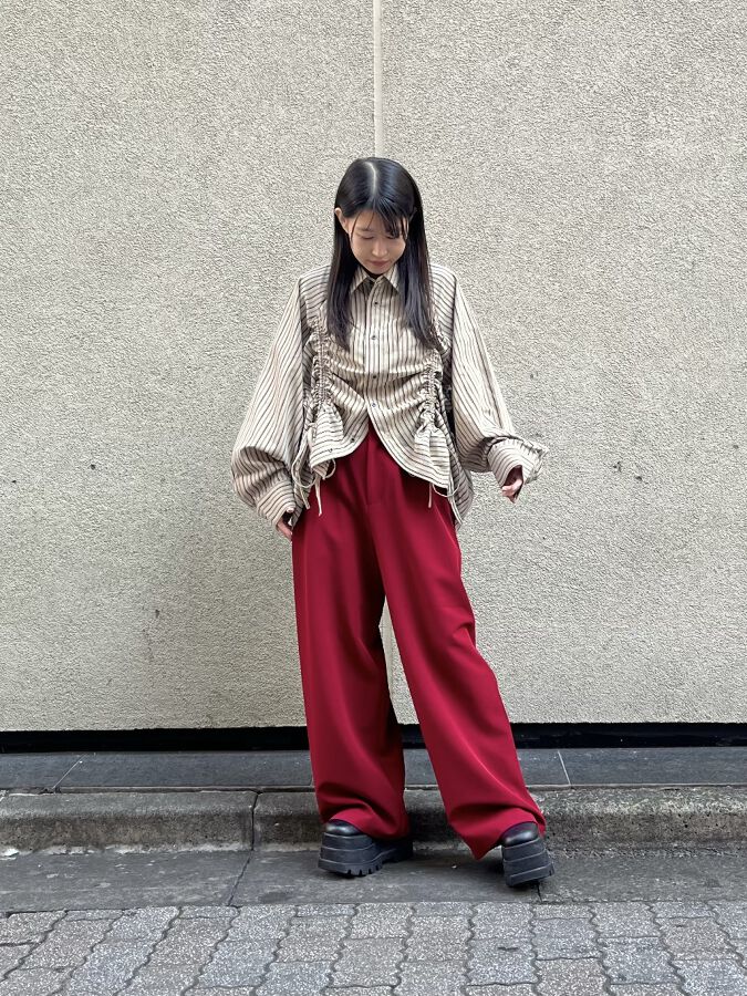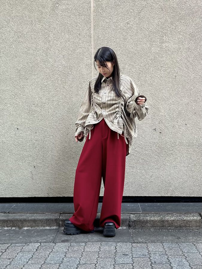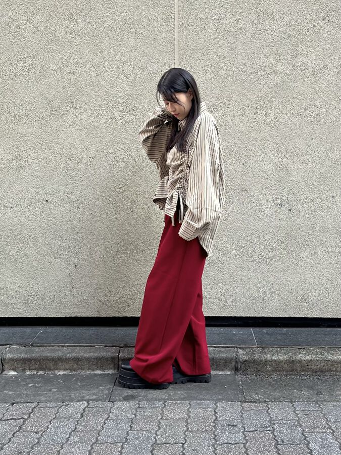 この冬大活躍するドロストシャツ◎ スカートやデニムパンツなどなんでも合わせれる万能アイテムです! 大人っぽくにはこの2タックカラーパンツがおすすめ! コーデカラーも秋冬意識に♪♪