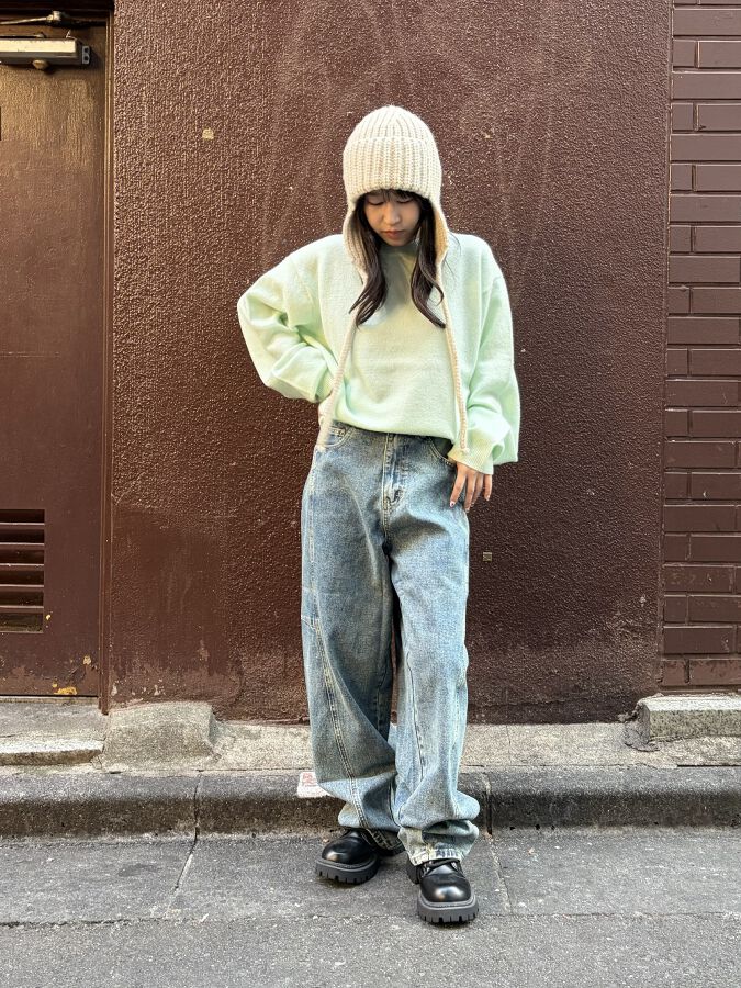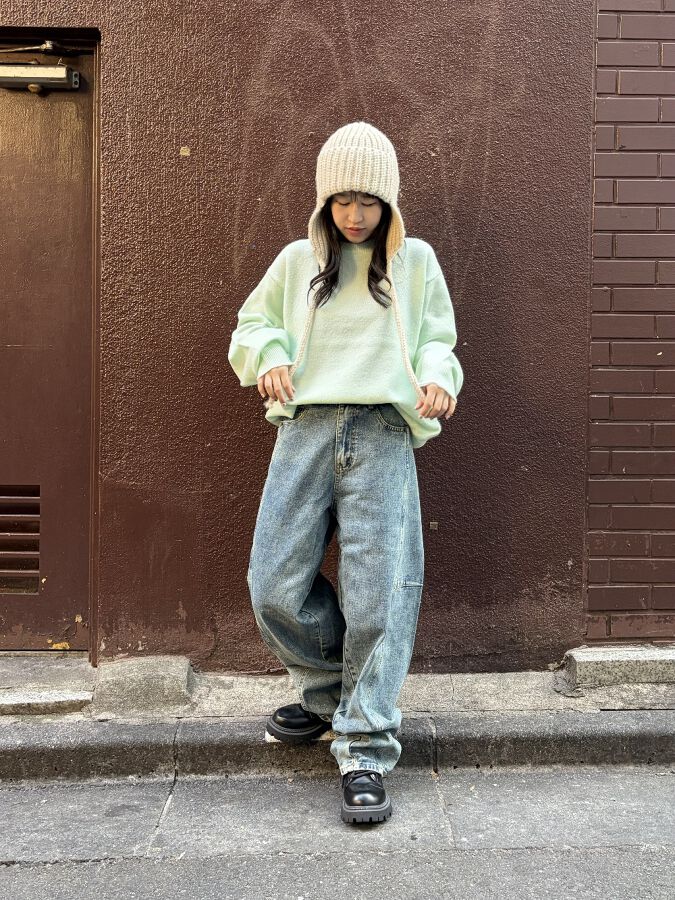 るなSHIBUYA109148cmInstagramID:luna_moonru2025.12.01ニット×デニムのカジュアルコーデに ニット帽を合わせて可愛らしい雰囲気をプラス♪♪PUNYUSプニュズぷにゅず渡辺直美ストリートカジュアルシンプルコーデナチュラルデニムスタイリング商品NEWクルーネックカラーニット ¥5,500 (税込)サイズ:1再入荷バレルデニムパンツ ¥7,700 (税込)サイズ:1NEW耳あて付きニット帽 ¥3,300 (税込)サイズ:FREE